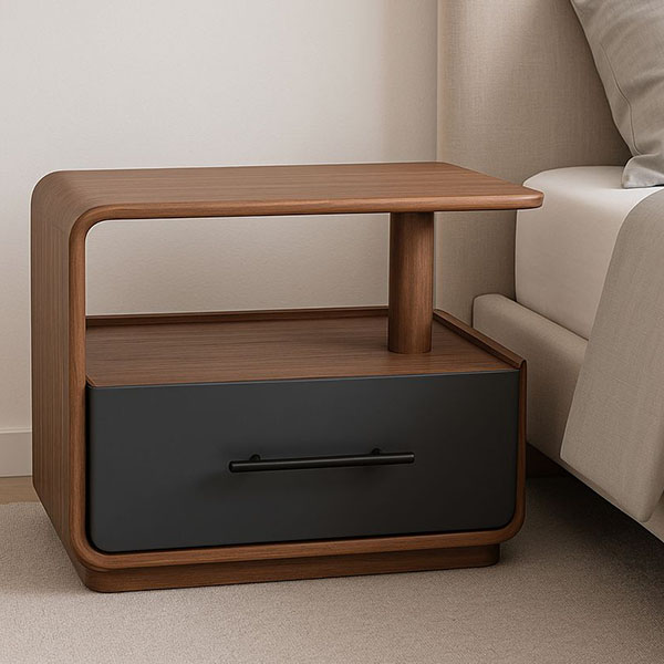 AMBER κομοδίνο σε μελαμίνη καρυδιά και γκρίζο συρτάρι (αριστερή)