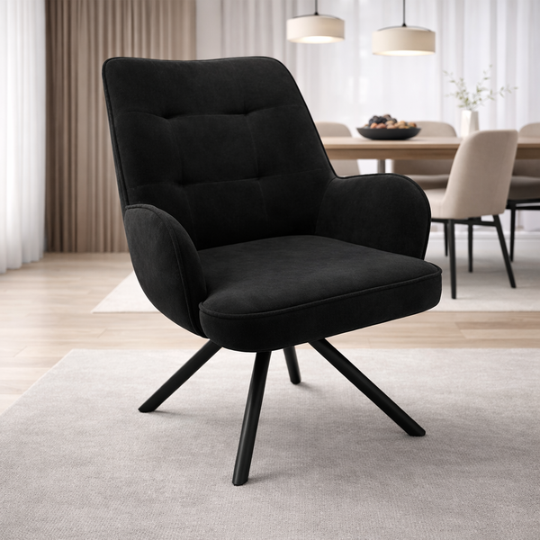 BELLA καρέκλα σε μαύρο αδιάβροχο ύφασμα και μαύρη ματ βάση