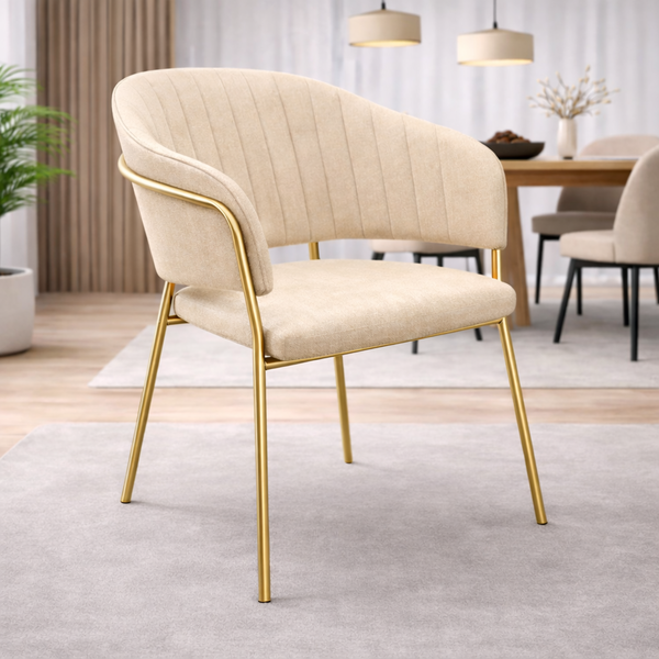 BILLY καρέκλα σε beige αδιάβροχο ύφασμα και χρυσή βάση