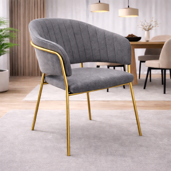 BILLY καρέκλα σε γκρίζο αδιάβροχο ύφασμα και χρυσή βάση