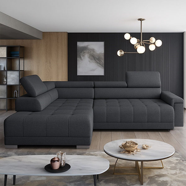CAMPO (L) γωνιακός καναπές-κρεβάτι (αριστερή γωνία) με ηλεκτρικό κάθισμα σε ανθρακί ύφασμα