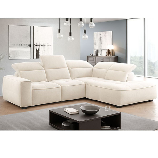 COLOMBO (L) γωνιακός καναπές (δεξιά γωνία) με αποθηκευτικό χώρο και ηλεκτρικά recliners σε cream ύφασμα