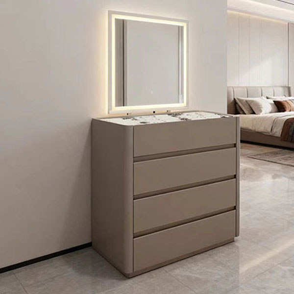 ELISA σιφονιέρα και καθρέφτη με φωτισμό champagne σε άσπρο-καφέ γυαλιστερό κεραμικό