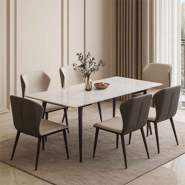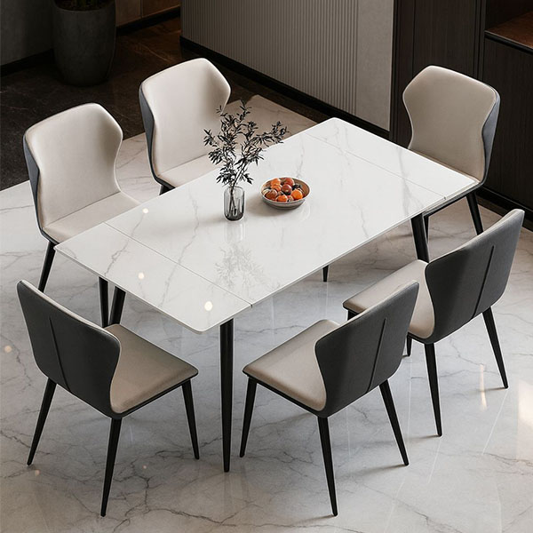 JAMES ανοιγόμενο τραπέζι σε άσπρο γυαλιστερό κεραμικό και μαύρη ματ βάση
