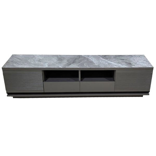 MARK έπιπλο τηλεόρασης σε γκρίζο γυαλιστερό κεραμικό και γκρι χρώμα ξύλου βάση