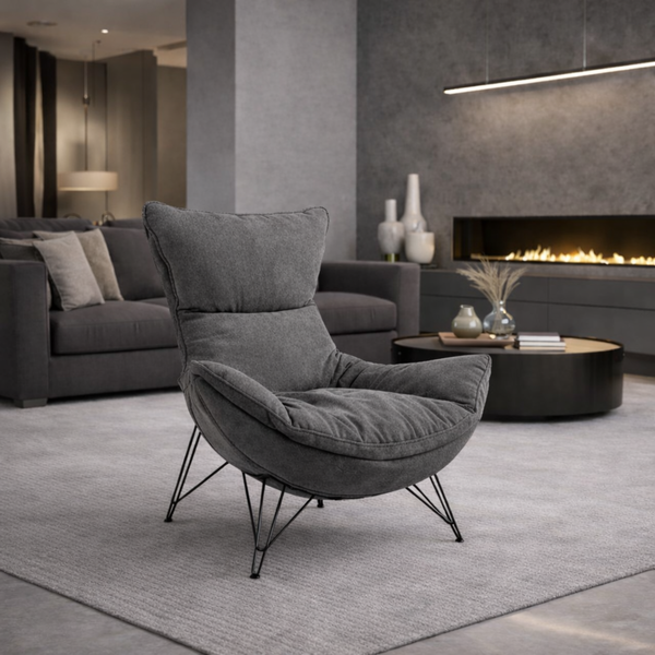 MERCURY πολυθρόνα σε γκρίζο αδιάβροχο ύφασμα και μαύρα πόδια