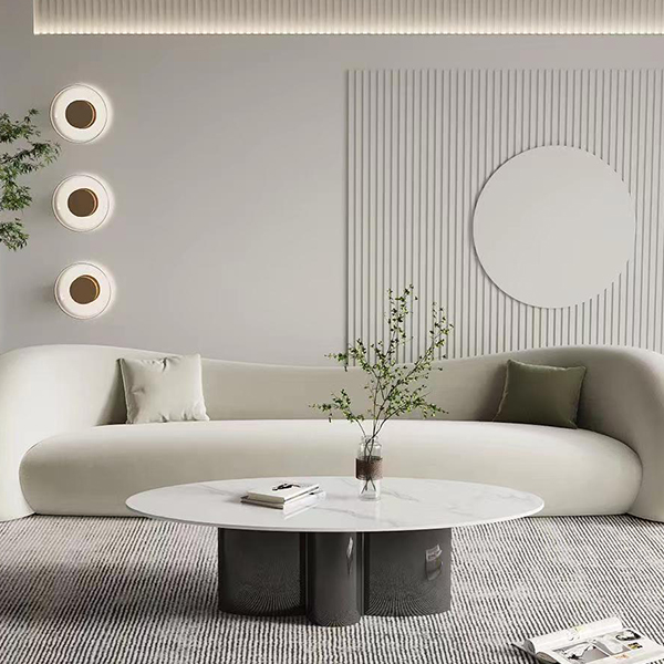 MESOGIOS τραπεζάκι σε οβάλ με άσπρο γυαλιστερό κεραμικό και γκρίζα βάση από ανοξείδωτο ατσάλι