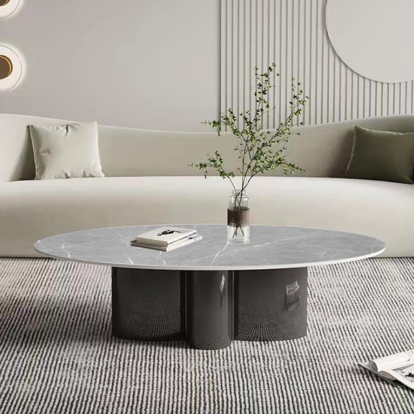MESOGIOS οβάλ τραπεζάκι σε γκρίζο κεραμικό και γκρίζα βάση από ανοξείδωτο ατσάλι