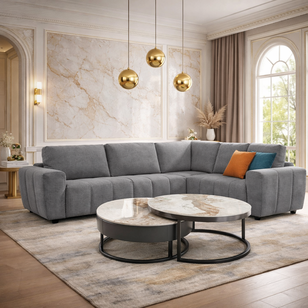 NICOLETTA γωνιακός καναπές σε γκρίζο αδιάβροχο ύφασμα