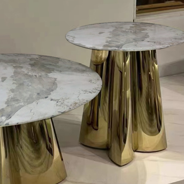 NONI βοηθητικό τραπεζάκι σαλονιού σε άσπρο-καφέ κεραμικό και χρυσή ανοξείδωτη βάση