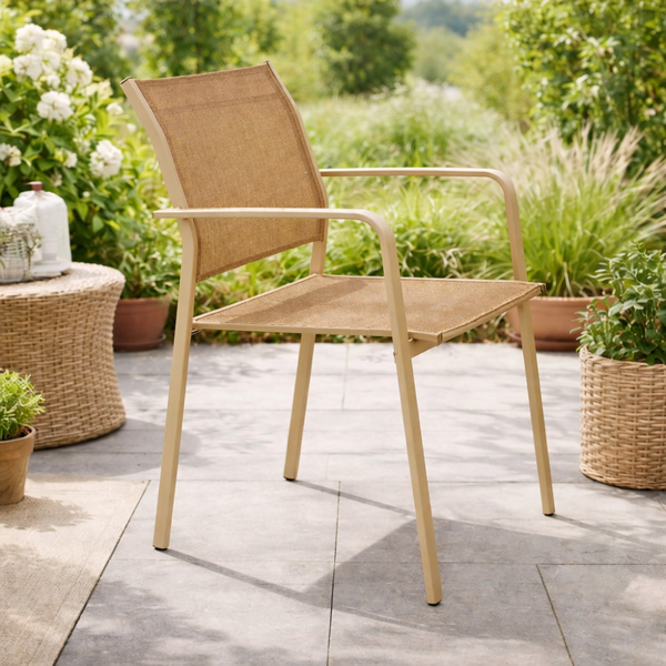 ROSE καρέκλα σε ανοιχτό καφέ ύφασμα και sand beige σκελετό