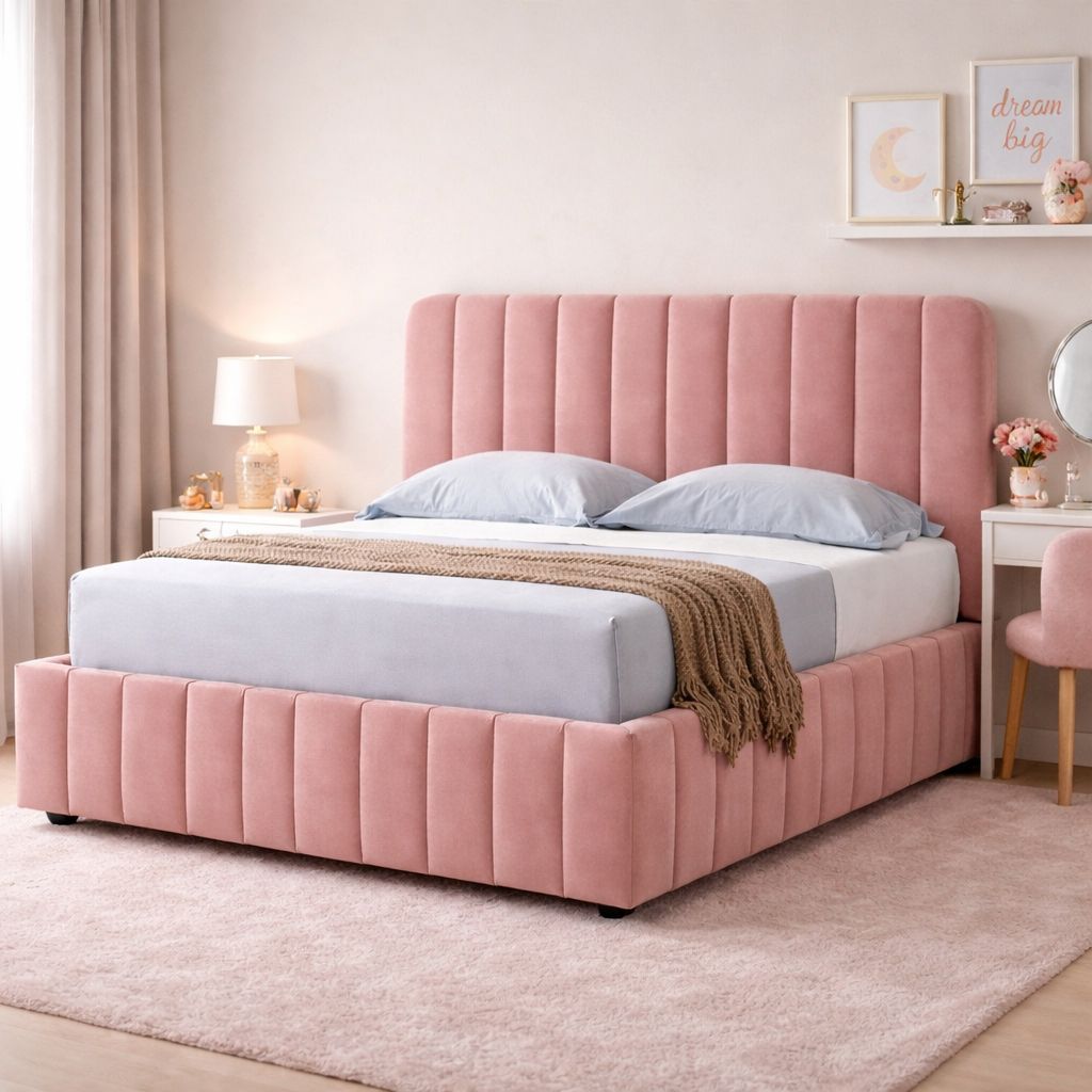 SANA κρεβάτι 107x190cm σε ροζ ύφασμα