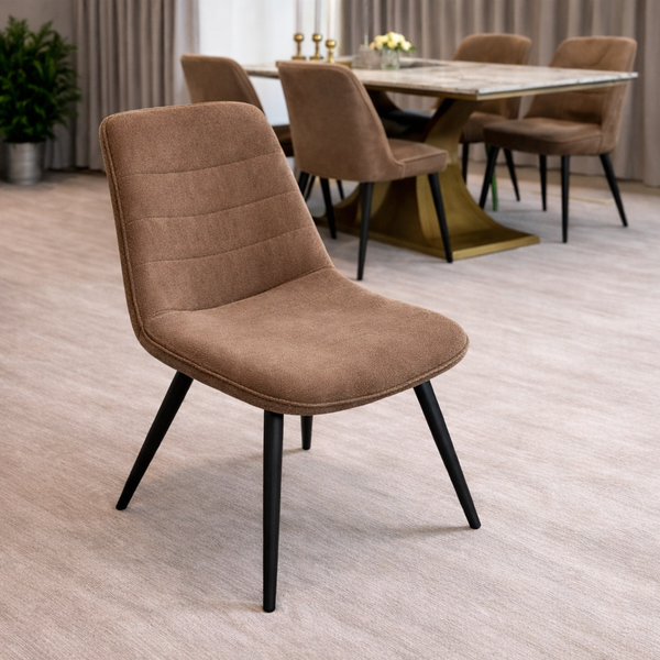 SOREYA καρέκλα σε καφέ αδιάβροχο ύφασμα και μαύρη ματ βάση