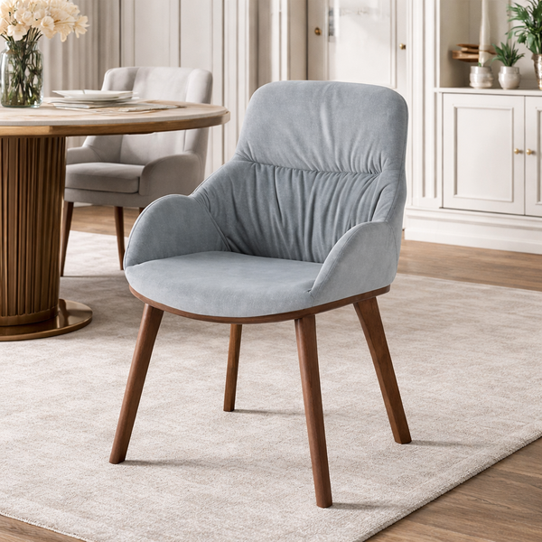 STEVEN καρέκλα σε γκρίζο ύφασμα και πόδια χρώματος καρυδιάς