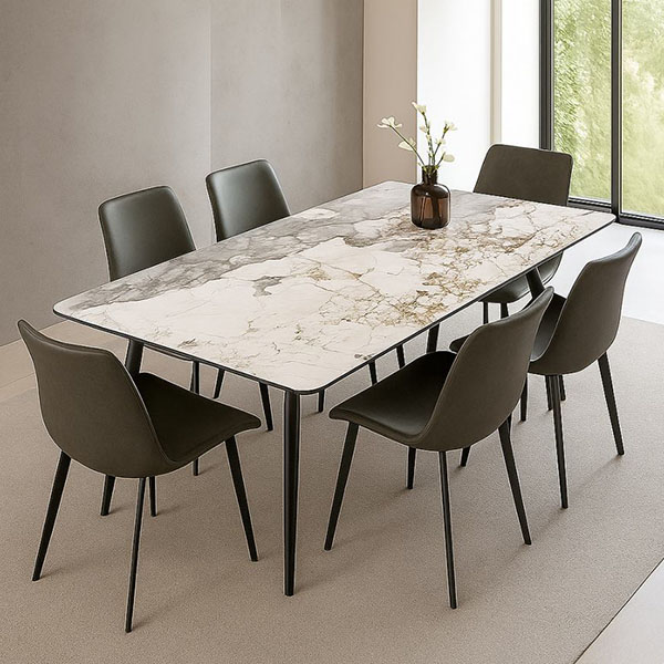 ALESANDRA table 160cm in white-brown gloss ceramic and matt black base