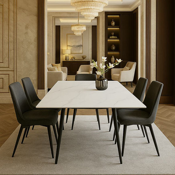 ALESANDRA table 180cm in white matt ceramic and matt black base