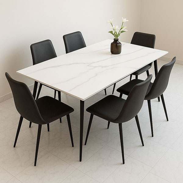 ALESANDRA table 140cm in white matt ceramic and matt black base