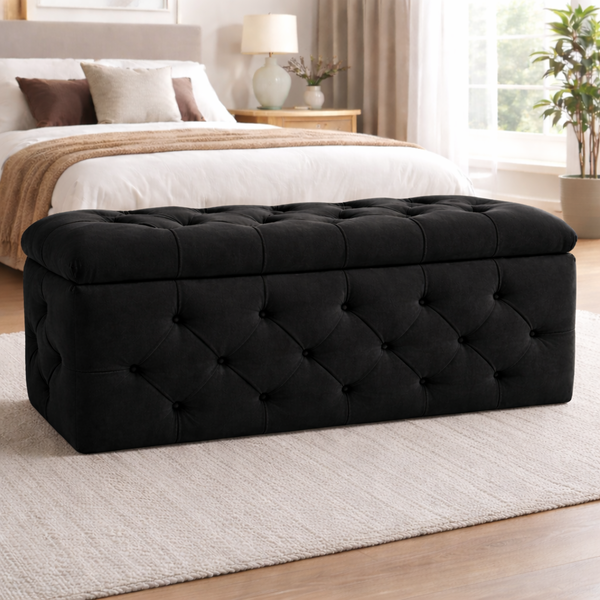 ALLEGRA FOOTSTOOL WITH STORAGE IN BLACK TEFLON FABRIC