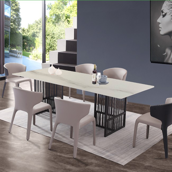 AMELIA table 220x100cm in white matt ceramic and golden stainless steel base