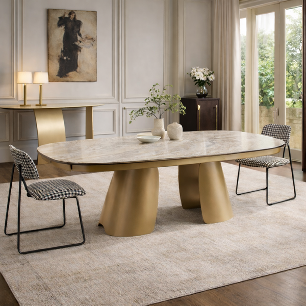 ANASTASIA extendable table in ceramic and champagne matt base