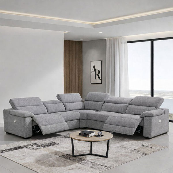 BARBARA corner sofa with 3 electric recliner seats in gray teflon fabric
