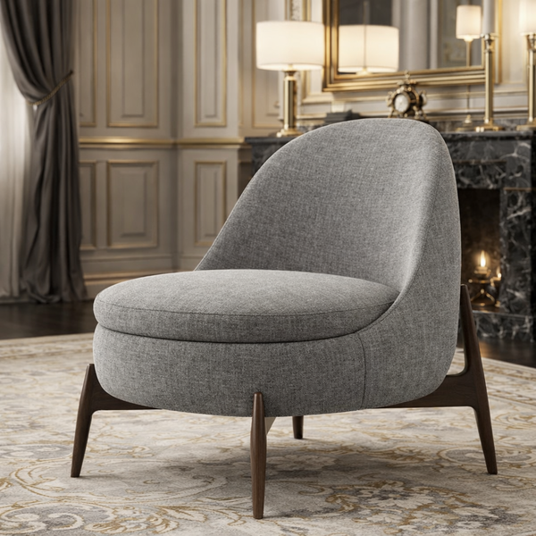 CRETE armchair in gray teflon fabric and walnut legs