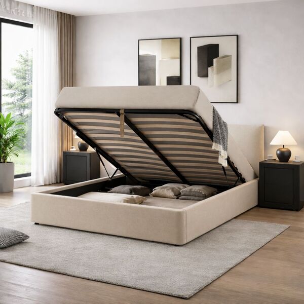 EMILY κρεβάτι 107x192cm με αποθηκευτικό χώρο σε beige ύφασμα