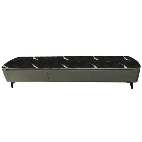 ERICA tv stand in black with white lines gloss ceramic, gray body and black base