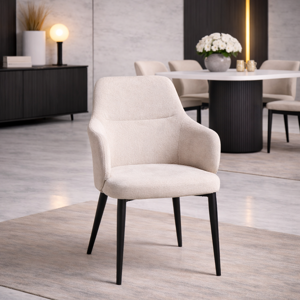 KELLY CHAIR IN BEIGE TEFLON FABRIC AND BLACK MATT BASE