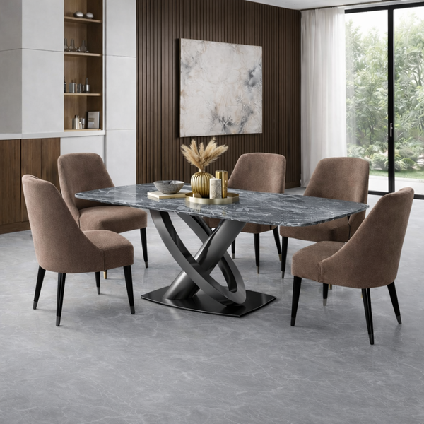 PATRA EXTENDABLE TABLE IN GRAY GLOSS CERAMIC AND BLACK MATT BASE