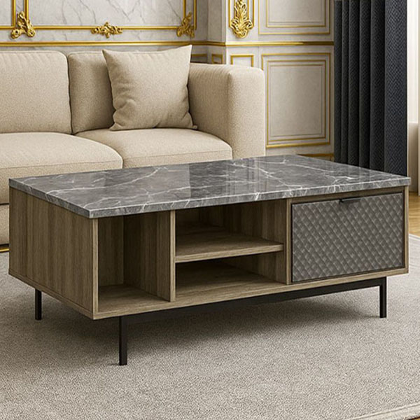 HAROLD coffee table in gray melamine (top in sinstered stone)