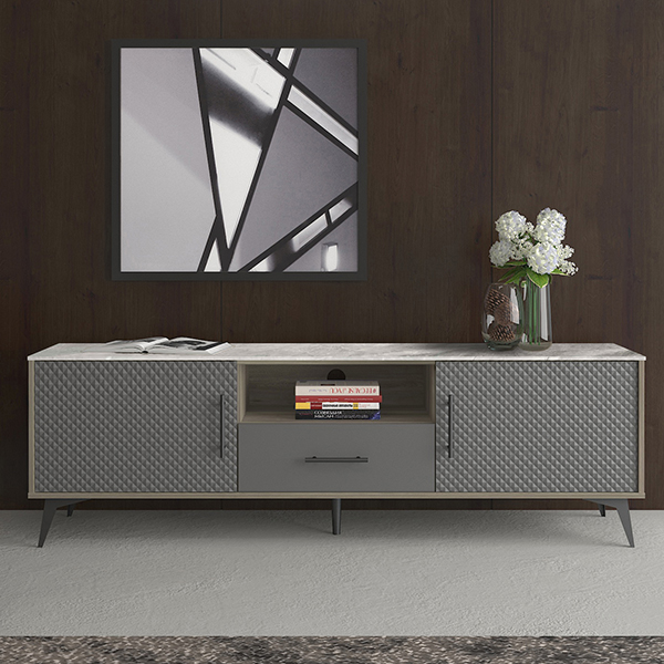 HAROLD TV STAND IN GRAY MELAMINE (TOP IN SINSTERED STONE)