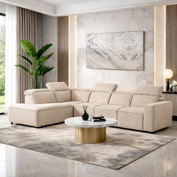 JACOB corner left sofa plus an armless chair attached in beige teflon fabric with pocket springs