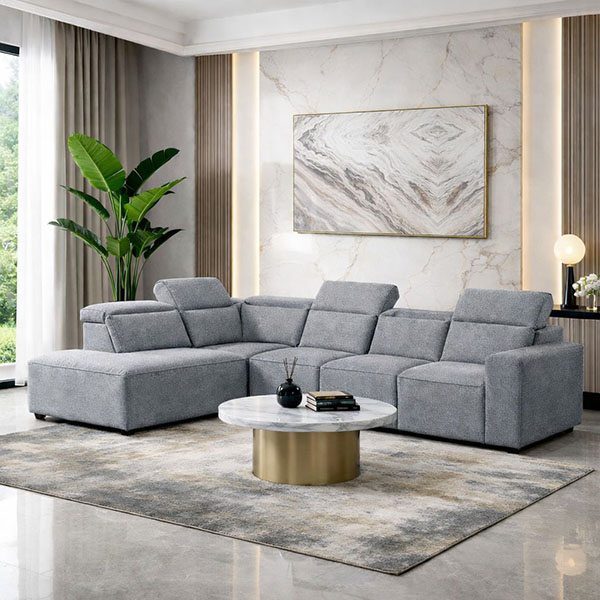 JACOB corner left sofa plus an armless chair attached in gray teflon fabric