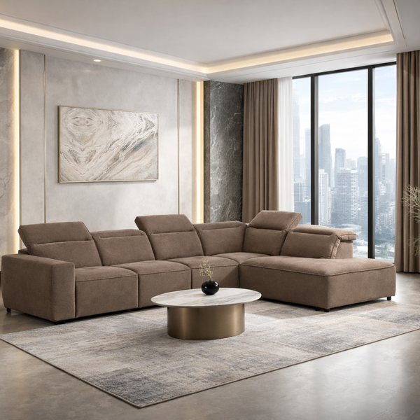 JACOB corner right sofa plus an armless chair attached in brown teflon fabric with pocket springs