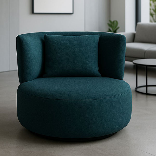 ALDEN ARMCHAIR IN BLUE TEFLON FABRIC AND BLACK METAL BASE