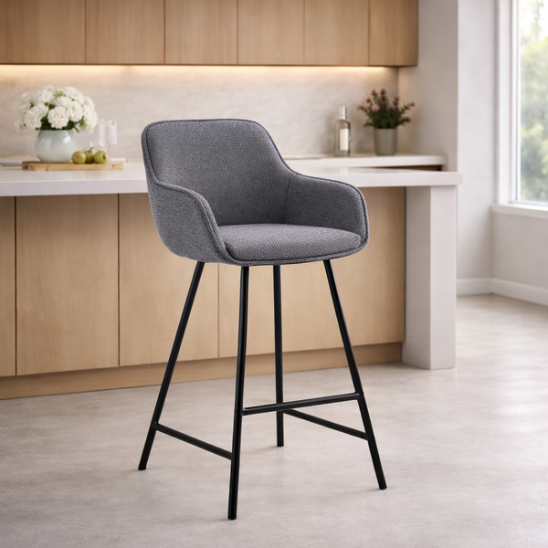 KAYLA bar stool in gray teflon fabric and black base