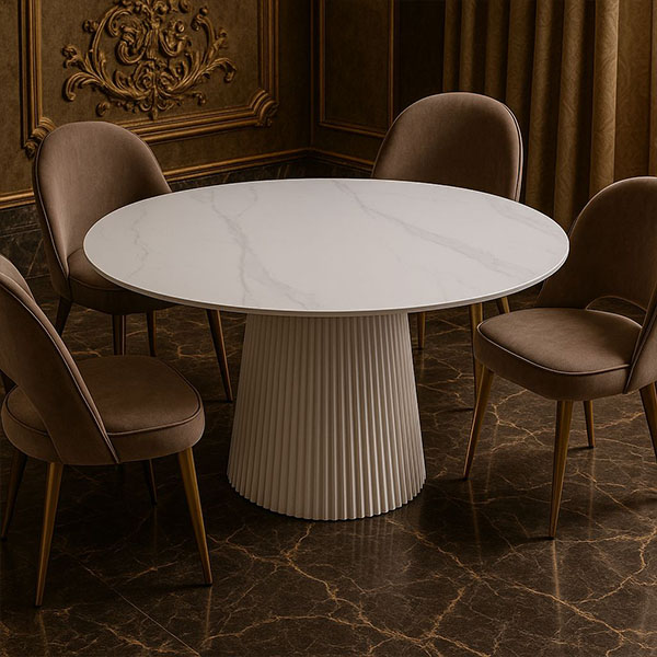 KEVIN TABLE 130cm IN WHITE GLOSS CERAMIC AND WHITE WOOD COLOR BASE
