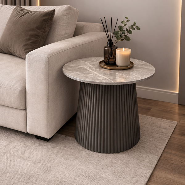 KEVIN side table in gray gloss ceramic and gray wooden base