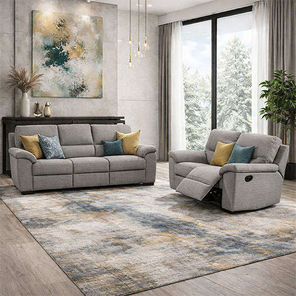 MARGARET 3seater and 2seater sofa with recliners in gray teflon fabric