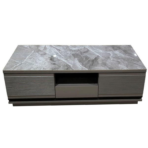 MARK COFFEE TABLE IN GRAY GLOSS CERAMIC AND GRAY WOOD COLOR BASE