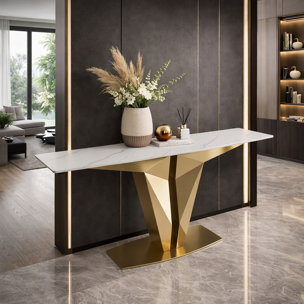 MELANIE CONSOLE IN WHITE MATT CERAMIC AND GOLDEN STAINLESS STEEL BASE