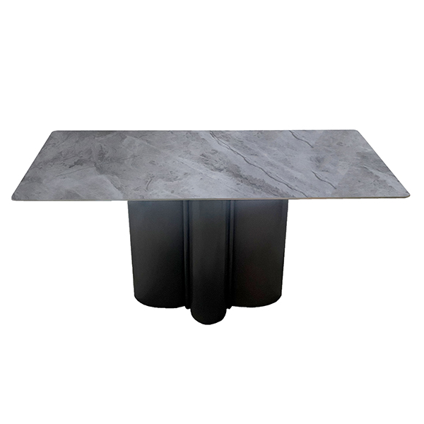 MESOGIOS dining table 200x100cm in gray gloss ceramic with stainless steel base