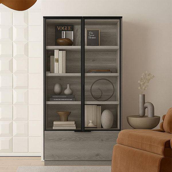MORGAN cabinet 90cm with light in gray melamine and glass doors