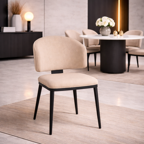 PETYA CHAIR IN BEIGE TEFLON FABRIC AND BLACK MATT BASE