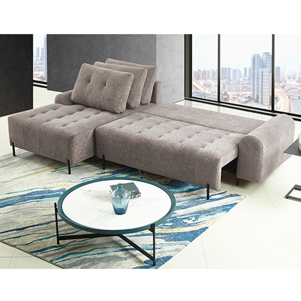 SHANNA corner - sofabed with storage (left chaise longue) in beige teflon fabric